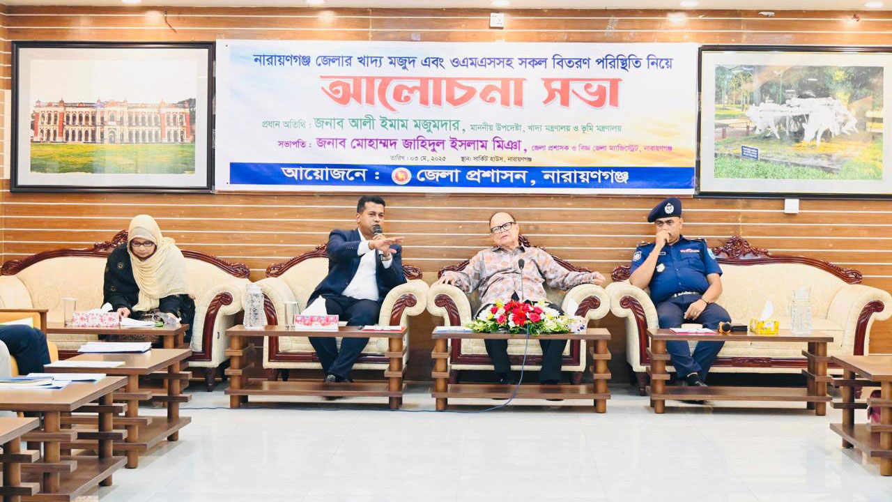 খাদ্য গুদাম পরিদর্শন শেষে খাদ্য মন্ত্রণালয়ের উপদেষ্টা আলী ইমাম মজুমদার নারায়ণগঞ্জের সার্কিট হাউজে গিয়ে জেলা প্রশাসক, পুলিশ সুপার ও জেলা খাদ্য নিয়ন্ত্রক কর্মকর্তার সঙ্গে জেলার খাদ্য মজুদ এবং ওএমএসসহ বিতরণ পরিস্থিতি নিয়ে আলোচনা করেন।