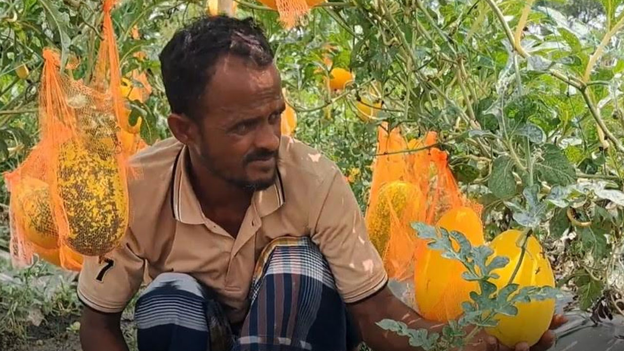 চাঁপাইনবাবগঞ্জে হলুদ তরমুজ চাষে কৃষকের মুখে হাসি