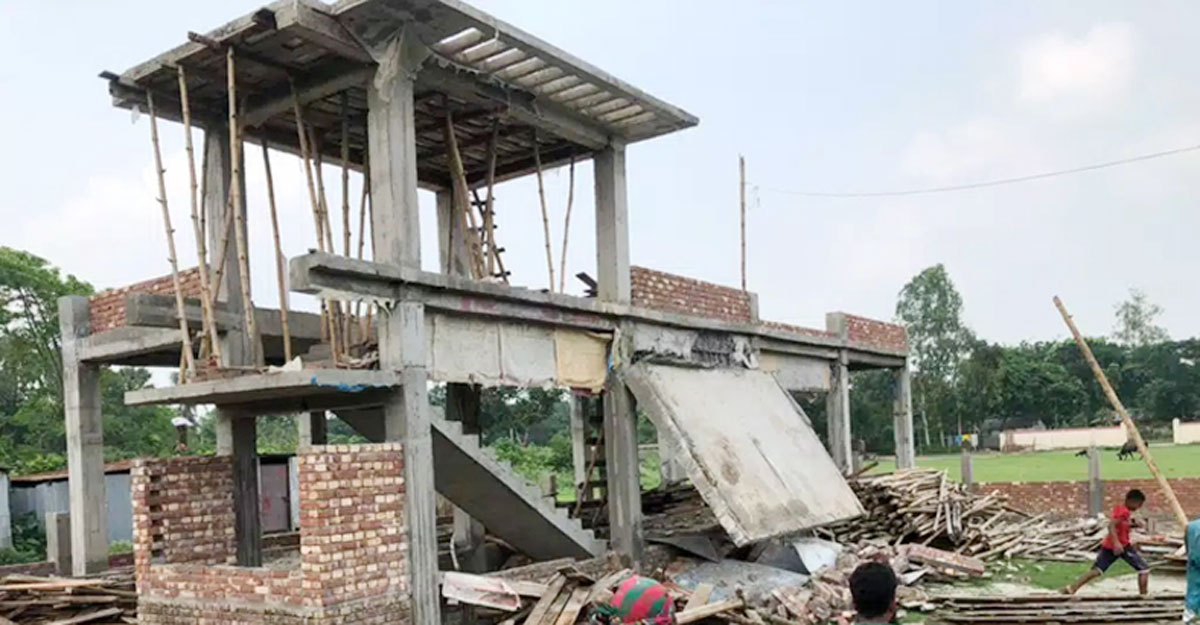 নির্মাণাধীন ভূমি অফিসের একাংশে ধস