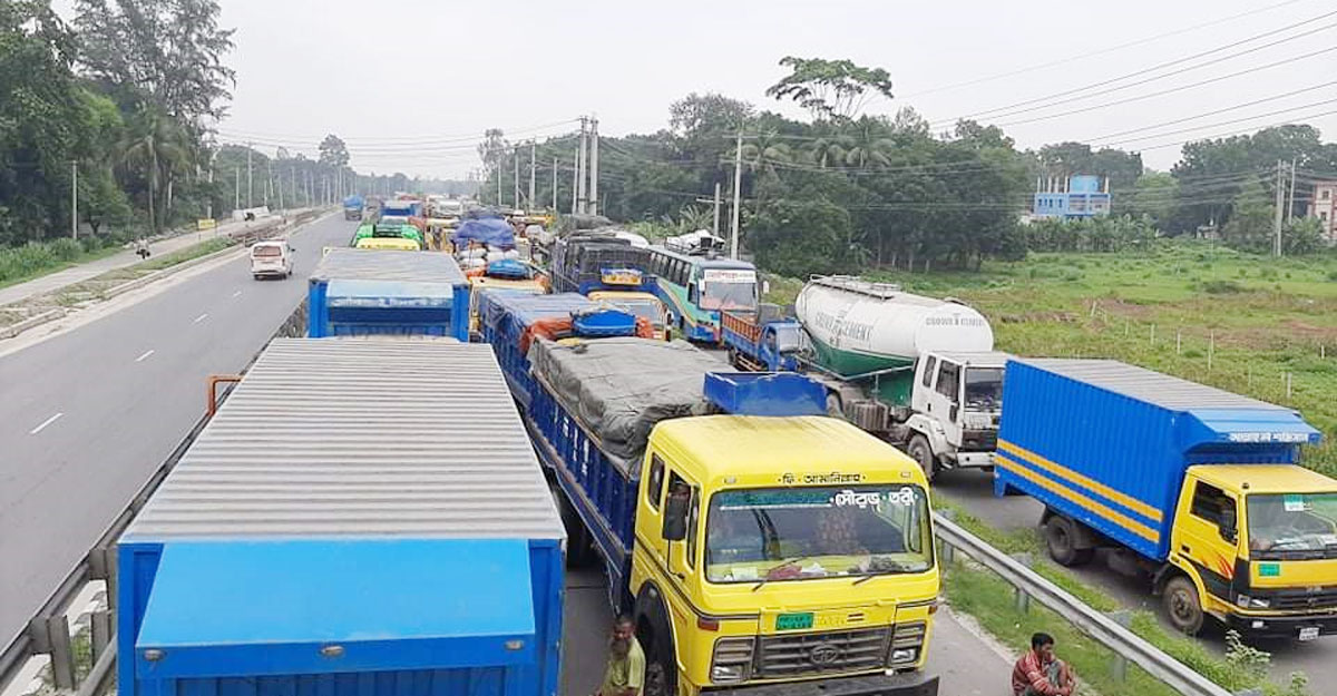 টাঙ্গাইলে মহাসড়কে দুর্ঘটনায় ২২ কিমি যানজট