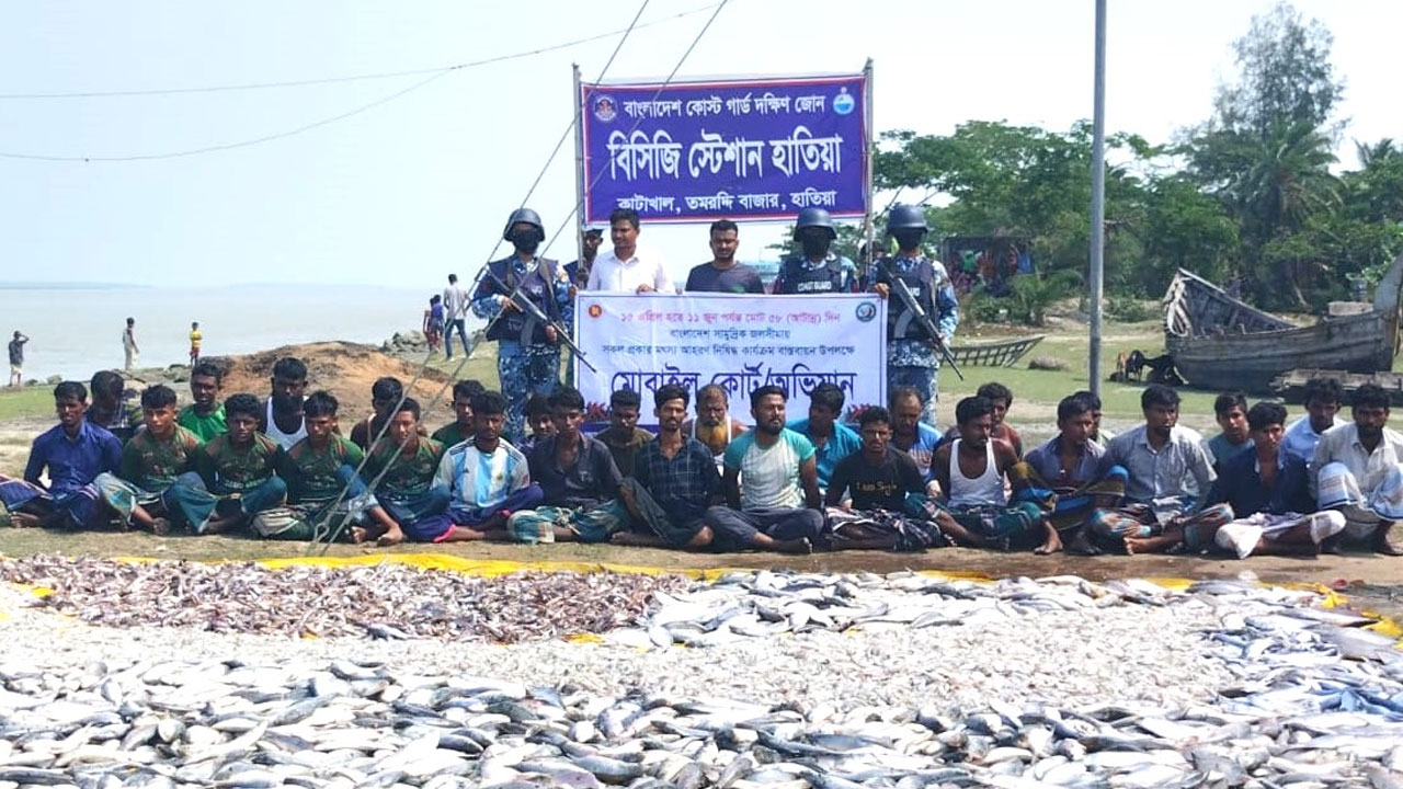 কোস্টগার্ড জানায়, গোপন সংবাদের ভিত্তিতে বিসিজি স্টেশন হাতিয়া কর্তৃক মৎস্য বিভাগের সমন্বয়ে হাতিয়া উপজেলাধীন হরনী ইউনিয়নের টাংকি ঘাট ও চেয়ারম্যান ঘাট এলাকায় একটি যৌথ অভিযান পরিচালনা করে দুটি ট্রলার আটক করা হয়। ট্রলারগুলো তল্লাশি করে ১২ লাখ টাকা মূল্যের ১৬০০ কেজি ইলিশ মাছ ও ৩০ জন জেলেকে আটক করা হয়। পরবর্তীতে জব্দকৃত দুটি ট্রলার মালিককে ১ লাখ ৮০ হাজার টাকা জরিমানা করে ৩০ জন জেলেকে মুচলেকা নিয়ে ছেড়ে দেওয়া হয়।
