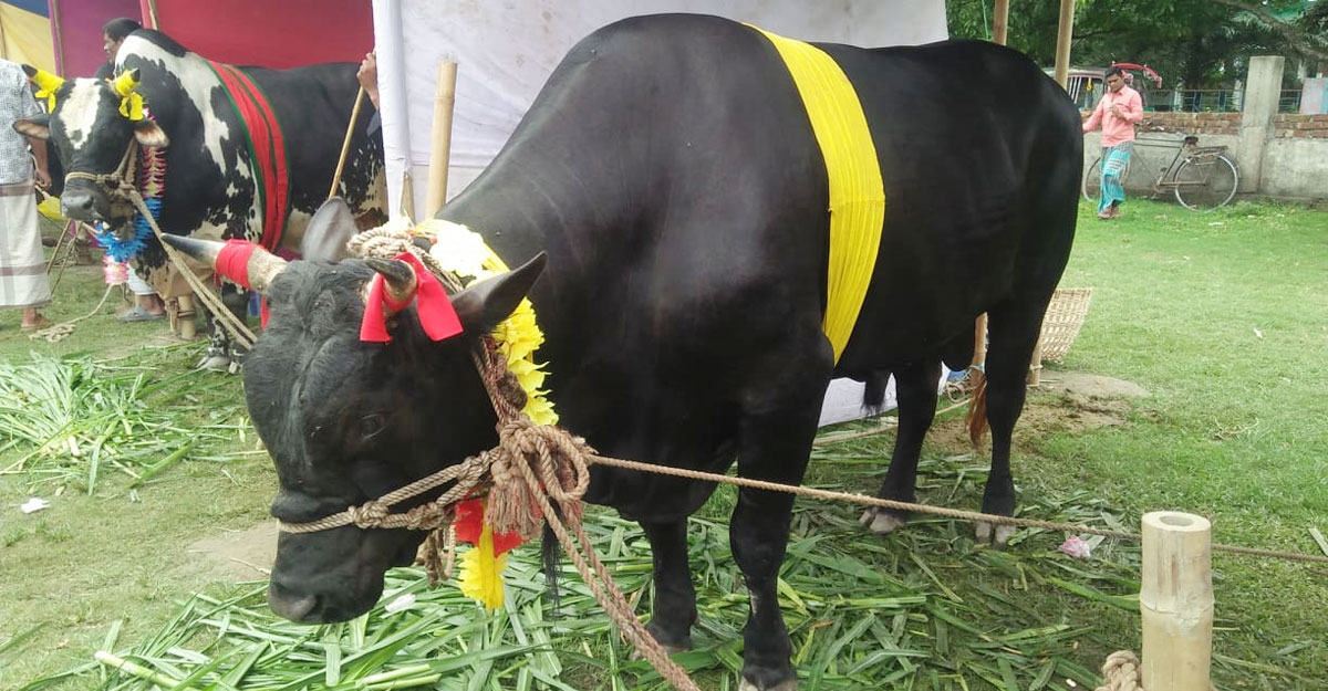 চার বছর বয়সী ষাঁড় গরুটির নাম ‘কালো পাহাড়’। ৩২ মণ ওজনের ফ্রিজিয়ান জাতের এ গরুটি দেখতে উৎসুক মানুষের ভিড় জমেছে। শনিবার (৫ জুন) দুপুরে নেত্রকোনার কেন্দুয়া পৌর শহরের খেলার মাঠে উপজেলা প্রাণিসম্পদ দফতর কর্তৃক আয়োজিত প্রাণিসম্পদ প্রদর্শনীতে গেলে এমন চিত্র চোখে পড়ে।