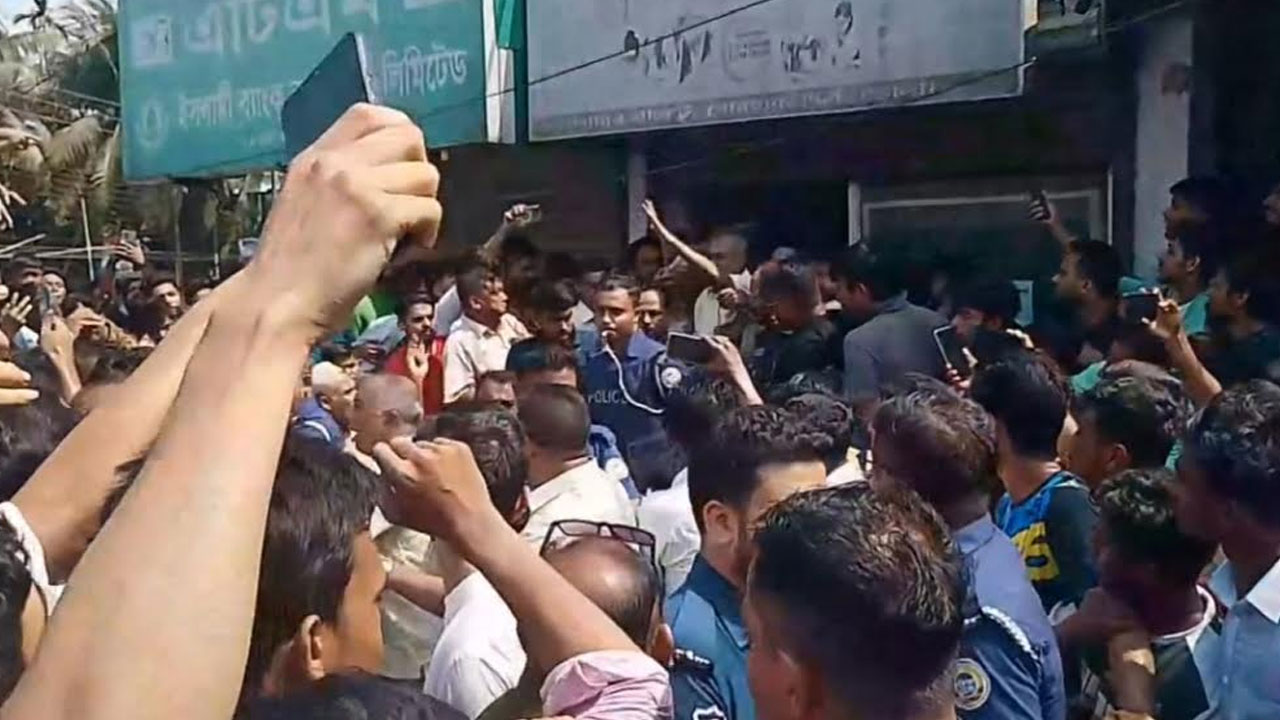 ভোলার বোরহানউদ্দিন উপজেলায় ছাত্রীর সঙ্গে অনৈতিক কর্মকাণ্ডের অভিযোগে রক্তিম শর্মা নামে এক শিক্ষককে জুতার মালা পরিয়ে গণধোলাই দিয়ে পুলিশে সোপর্দ করেছে স্থানীয়রা। এ ঘটনায় সে শিক্ষকের সর্বোচ্চ শাস্তির দাবিতে আজ বিক্ষোভ মিছিল ও সমাবেশ করেছেন স্থানীয় শিক্ষার্থীরা।