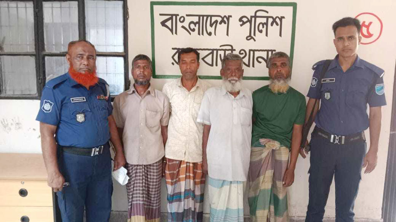 গ্রেপ্তারকৃতরা হলেন, সদর উপজেলার বসন্তপুর ইউনিয়নের রাজাপুর গ্রামের রুকমান বিশ্বাসের ছেলে জহিরুদ্দিন বিশ্বাস (৬৫), মৃত ফেলু বিশ্বাসের ছেলে মৈজদ্দি বিশ্বাস (৫৫), ফরহাদ বিশ্বাস (৪৫) ও আব্দুল খালেক মোল্লার ছেলে ও মুন্নু মোল্লা (৫০)।