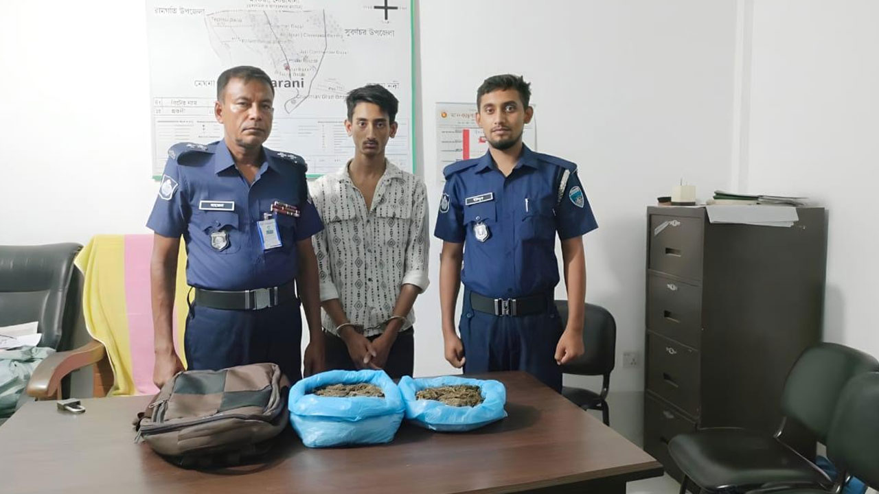 শনিবার (১৭ মে) রাতে হরণী ইউনিয়নের চেয়ারম্যান ঘাট পুলিশ ফাঁড়িতে তাকে সোপর্দ করা হয়। এসময় তার কাছ থেকে এক কেজি ৩০০ গ্রাম গাঁজা জব্দ করে।