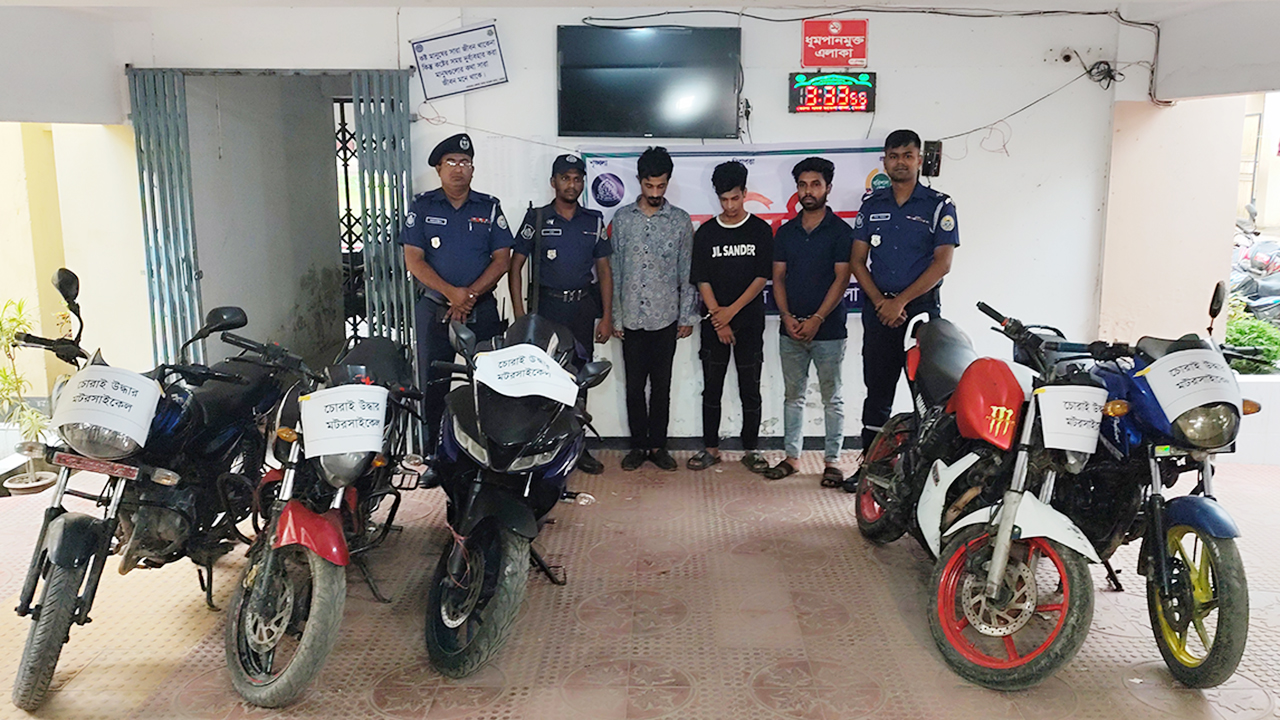 ভোলায় ৫ চোরাই মোটরসাইকেলসহ চোরচক্রের তিন সদস্য গ্রেপ্তার