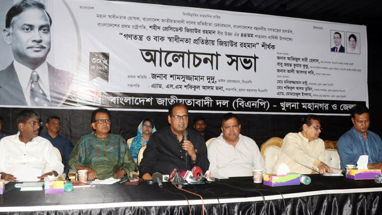 বৃহস্পতিবার (২৯ মে) বিকেল ৩টায় খুলনা প্রেসক্লাবের ব্যাংকুয়েট হল মিলনায়তনে ‘গণতন্ত্র ও বাক স্বাধীনতা প্রতিষ্ঠায় জিয়াউর রহমান’ শীর্ষক মহানগর বিএনপির আলোচনা সভায় প্রধান অতিথির বক্তব্যে তিনি এসব কথা বলেন। তিনি অন্তর্বর্তীকালীন সরকারকে দ্রুত নির্বাচনের তারিখ ঘোষণার আহ্বান জানান।