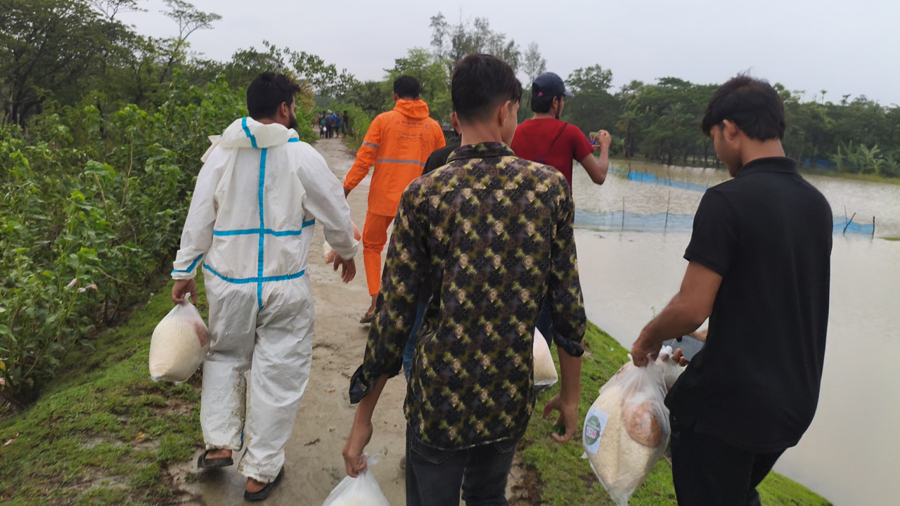 শুকনো খাবার নিয়ে হাতিয়ার ৭০০ পানিবন্দি পরিবারের পাশে হান্নান মাসউদ