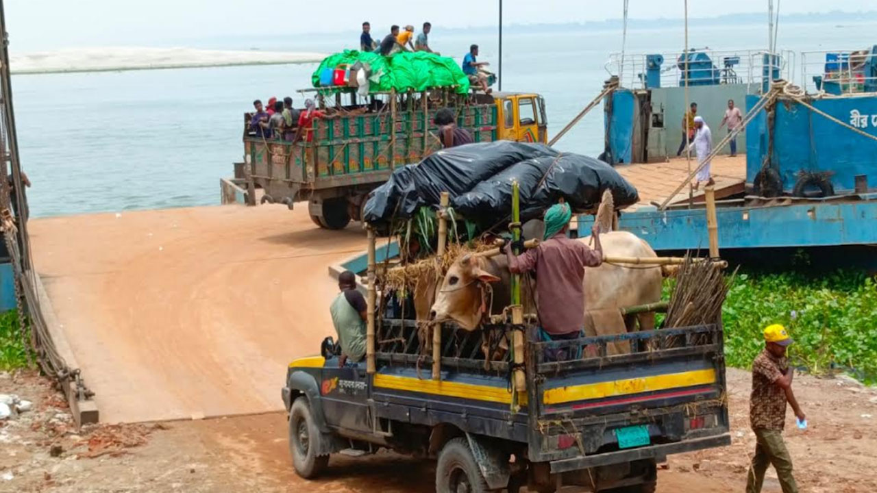 দৌলতদিয়া ঘাট দিয়ে ভোগান্তি ছাড়াই পার হচ্ছে পশুবাহী যানবাহন