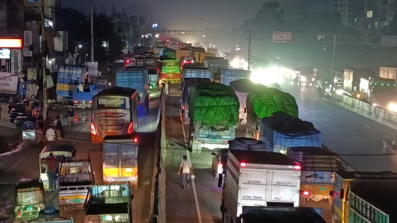 মঙ্গলবার (৩ জুন) ৯টা থেকে এ যানজটের সৃষ্টি হয়। রাত ১০টায় এ রিপোর্ট লেখা পর্যন্ত সরেজমিনে দেখা গেছে, মহাসড়কের ঢাকামুখী লেনে যতদূর চোখ যায় শুধু গাড়ির সারি। এ ছাড়া মহাসড়কের ঢাকামুখী লেন স্থবির হয়ে আছে।