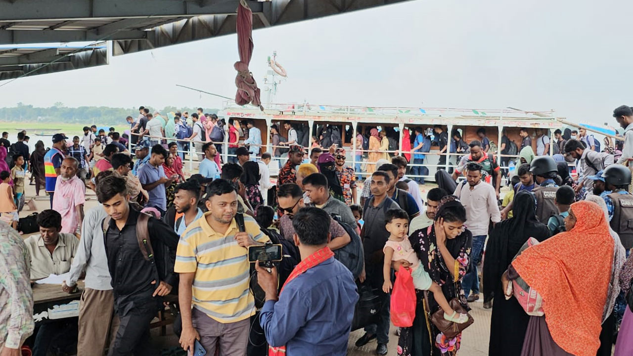 দৌলতদিয়া ঘাটে ঘরমুখো যাত্রীর ভিড়, ভোগান্তি নেই