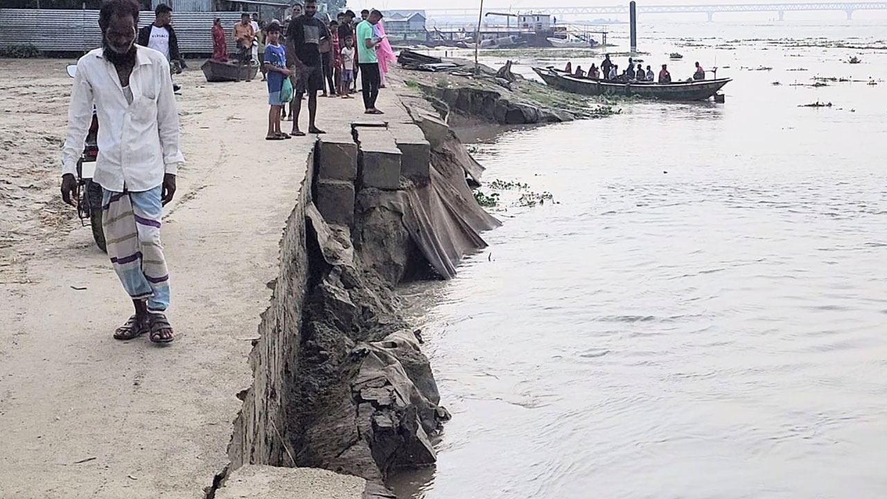 পদ্মা সেতু প্রকল্প এলাকা রক্ষা বাঁধে ধস, আতঙ্কে নদীপাড়ের মানুষ