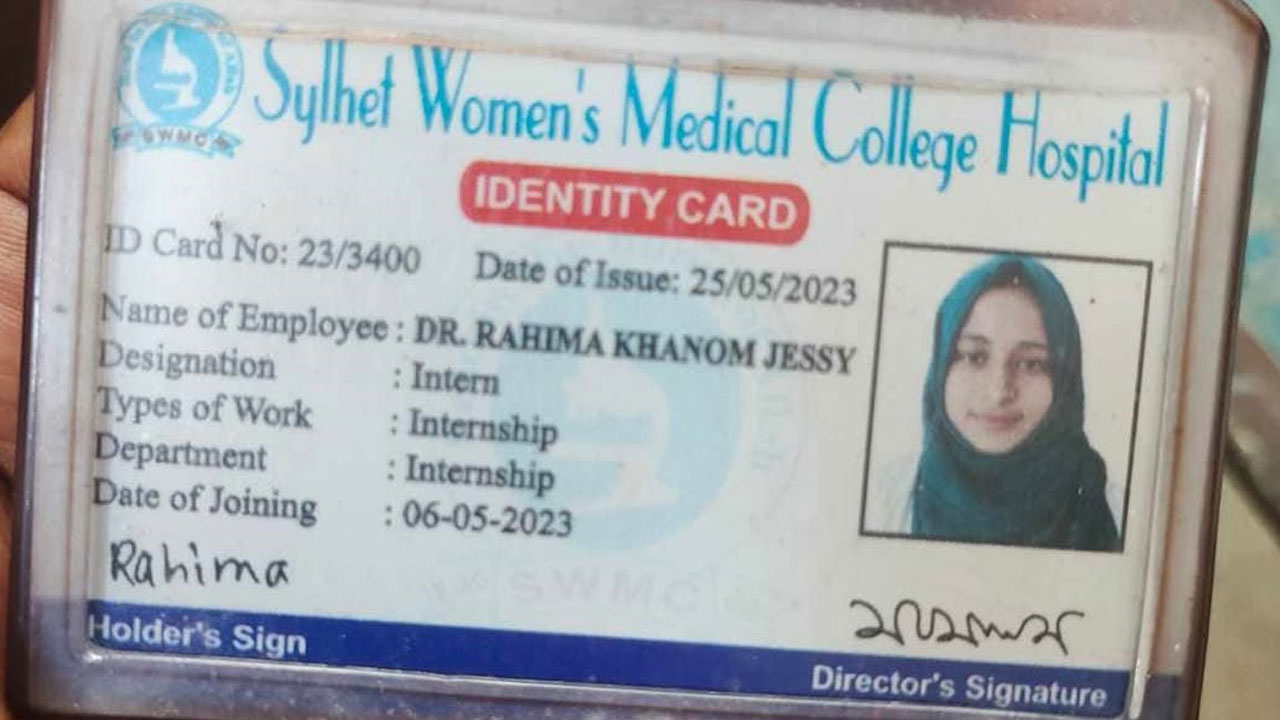 নিহত রাহিমা খানম জেসি সিলেট উইমেন্স মেডিকেল কলেজ হাসপাতালের ইন্টার্ন চিকিৎসক ছিলেন। তিনি সিলেটের দক্ষিণ সুরমা উপজেলার লালাবাজার ইউনিয়নের আবু নছরের মেয়ে।