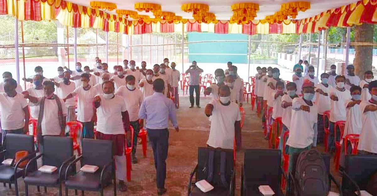 ধূমপান ত্যাগের শপথবাক্য পাঠ করছেন শ্রমিকরা