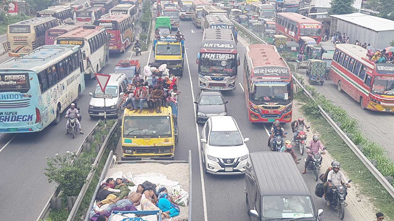 ঈদের ছুটি শেষে কর্মস্থলে ছুটছেন ঘরমুখো লাখ লাখ মানুষ। ফলে কর্মজীবী মানুষের ঢল নেমেছে ঢাকা-টাঙ্গাইল যমুনা সেতু মহাসড়কে। উত্তরবঙ্গের প্রবেশদ্বার যমুনা সেতুর ওপর ১৮টি যানবাহন বিকল হওয়ার ঘটনায় মহাসড়কে ২০ কিলোমিটার এলাকাজুড়ে যানজটের সৃষ্টি হয়। ঢাকাগামী ও উত্তরবঙ্গগামী লেনে দিনভর ছিল অসহনীয় জনদুর্ভোগ ও ভোগান্তি পোহাতে হয়েছে যাত্রীদের। পরে দ্রুত যানজট নিরসনে সেতুর এক লেন দিয়ে ঢাকা ও উত্তরবঙ্গগামী যানবাহন পারপার করে সেতু কর্তৃপক্ষ।
