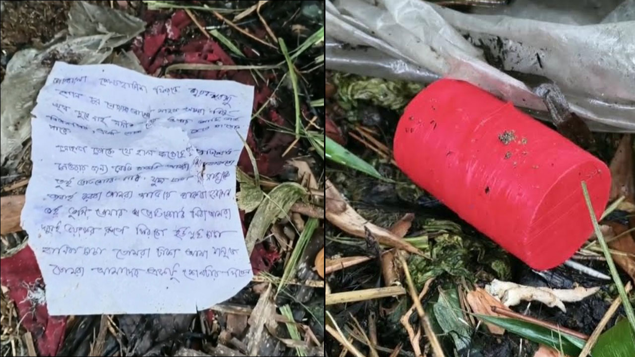 মঙ্গলবার (১৭ জুন) সকালে উপজেলার চর গোয়ালাগ্রাম থেকে বোমা সদৃশ বস্তু ও চিরকুটটি উদ্ধার করা হয়।
