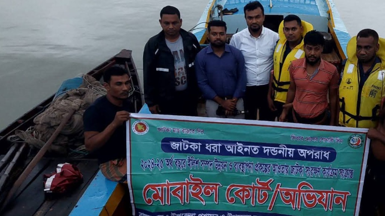অবৈধ জাল দিয়ে মাছ ধরায় এক জেলেকে কারাদণ্ড