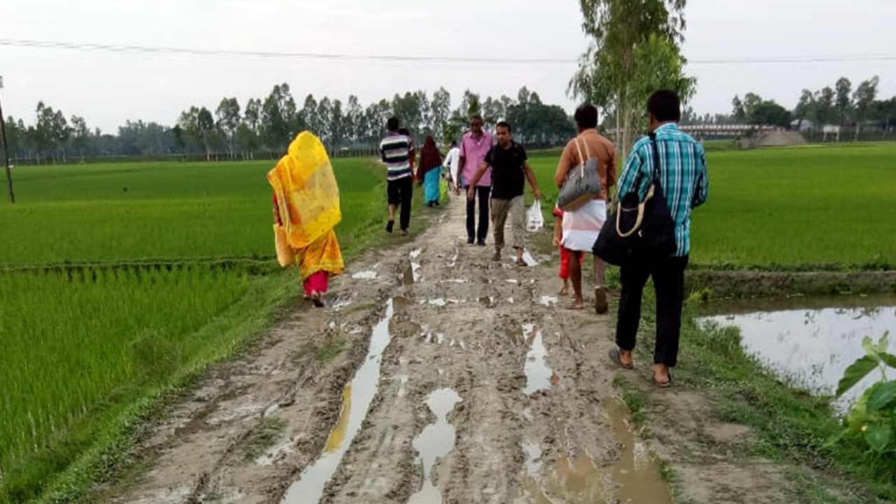 খানাখন্দে ভরা একমাত্র কাঁচা রাস্তাটি, সীমাহীন দুর্ভোগে দুই গ্রামের মানুষ