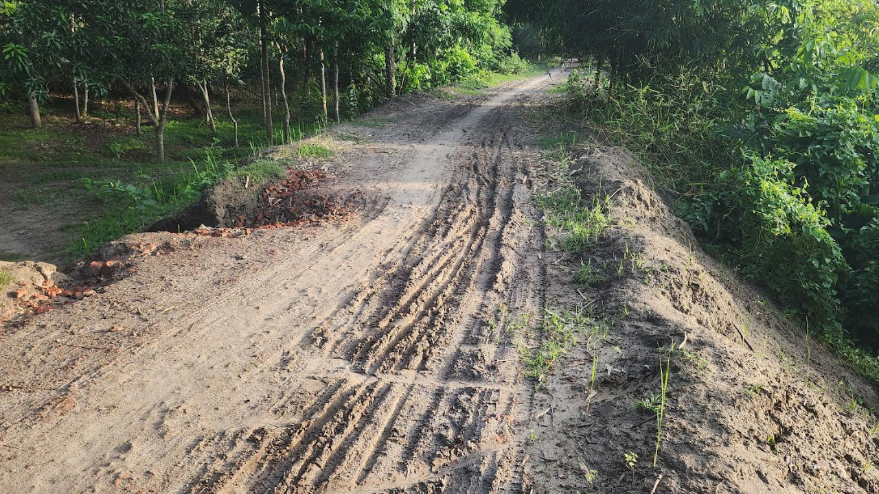 সোমবার (২৩ জুন) বিকেলে সরেজমিনে গিয়ে দেখা যায়, রাস্তা কাদায় ভরে আছে। কেউ জুতা হাতে হাঁটছেন, কেউ মোটরসাইকেল ঠেলে নিয়ে যাচ্ছেন, কেউবা আবার সাইকেল কাঁধে করে হাঁটছেন। রাস্তার দুই পাশে ইটের খোয়া স্তূপ করে রাখা। বর্ষার পানি জমে চলাচলের অনুপযোগী হয়ে উঠেছে, তিন গ্রামের মানুষের চলাচলের একমাত্র পথ এটি।