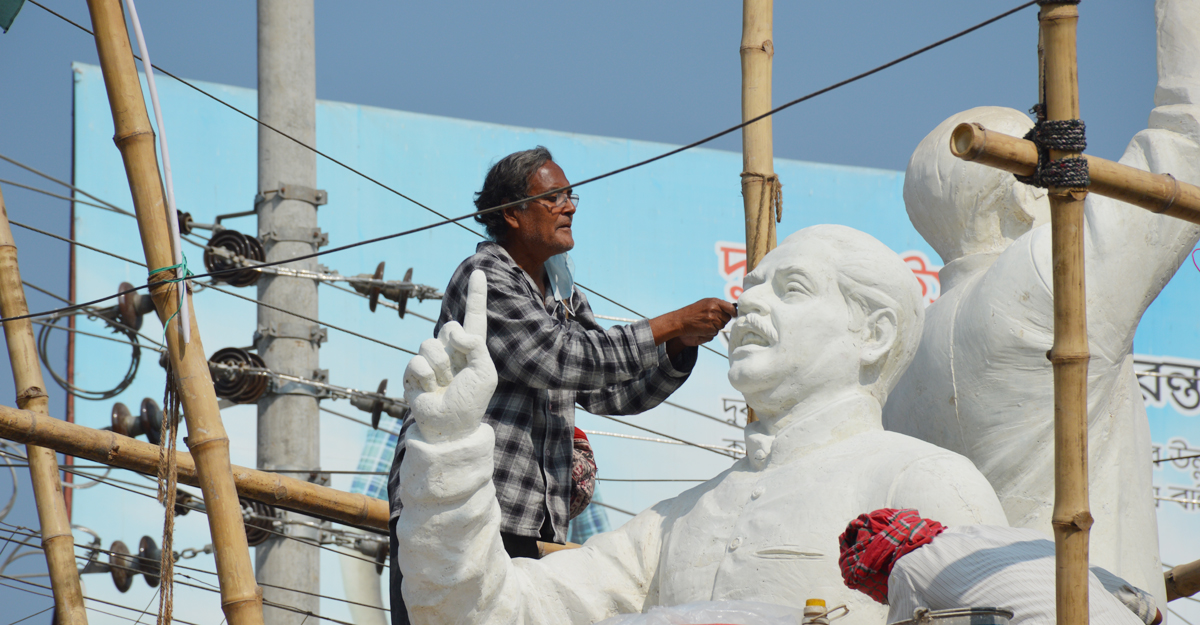 ভাস্করের ছোঁয়ায় তর্জনী উঠিয়ে দাঁড়িয়ে আছেন বঙ্গবন্ধু