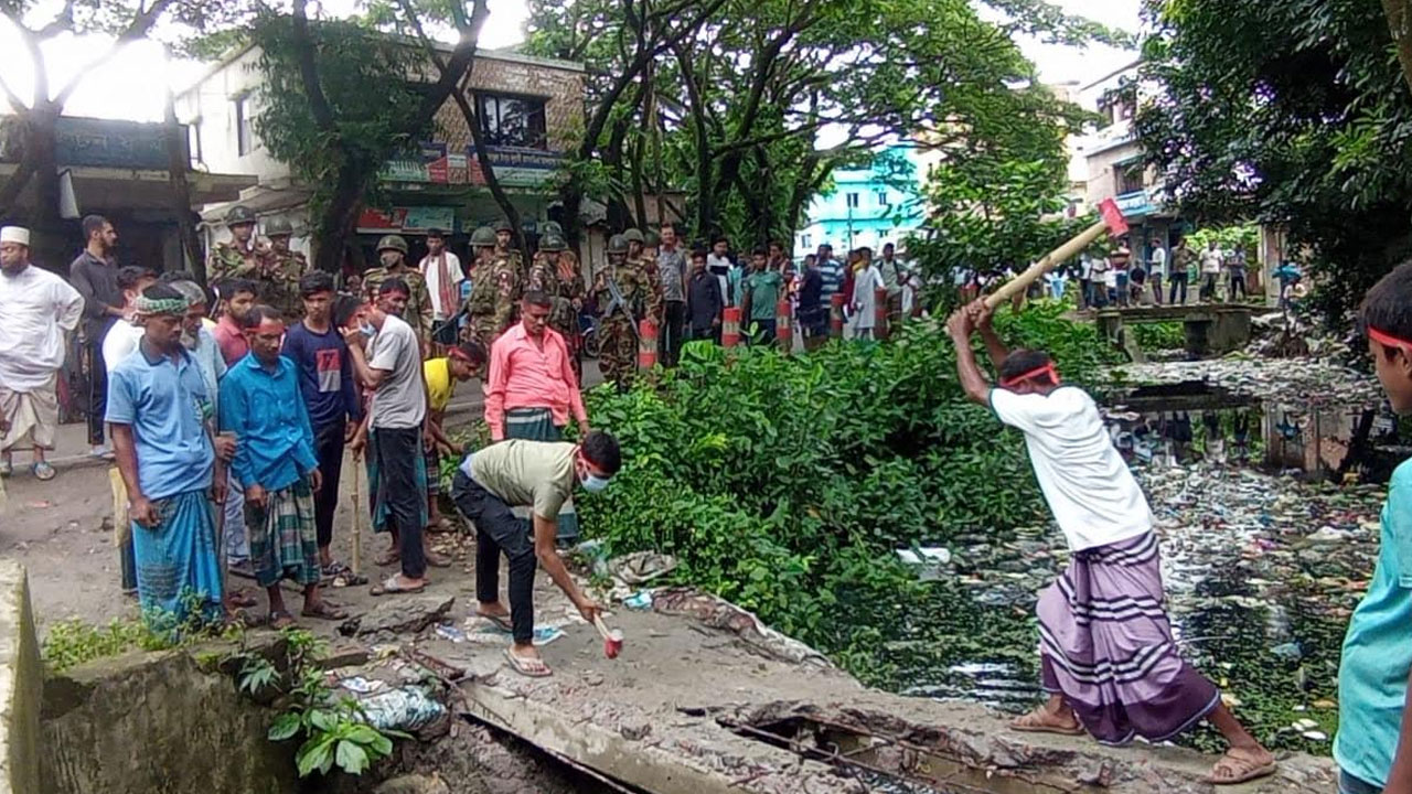 বুধবার (২৫ জুন) সকাল থেকে দুপুর পর্যন্ত জেলা প্রশাসনের উদ্যোগে নির্বাহী ম্যাজিস্ট্রেট মজিবুর রহমানের নেতৃত্বে উচ্ছেদ অভিযান পরিচালনা করা হয়। এসময় দেয়াল ধসে তিনজন শ্রমিক আহত হন। তাদেরকে স্থানীয় ক্লিনিকে চিকিৎসা দেওয়া হয়।