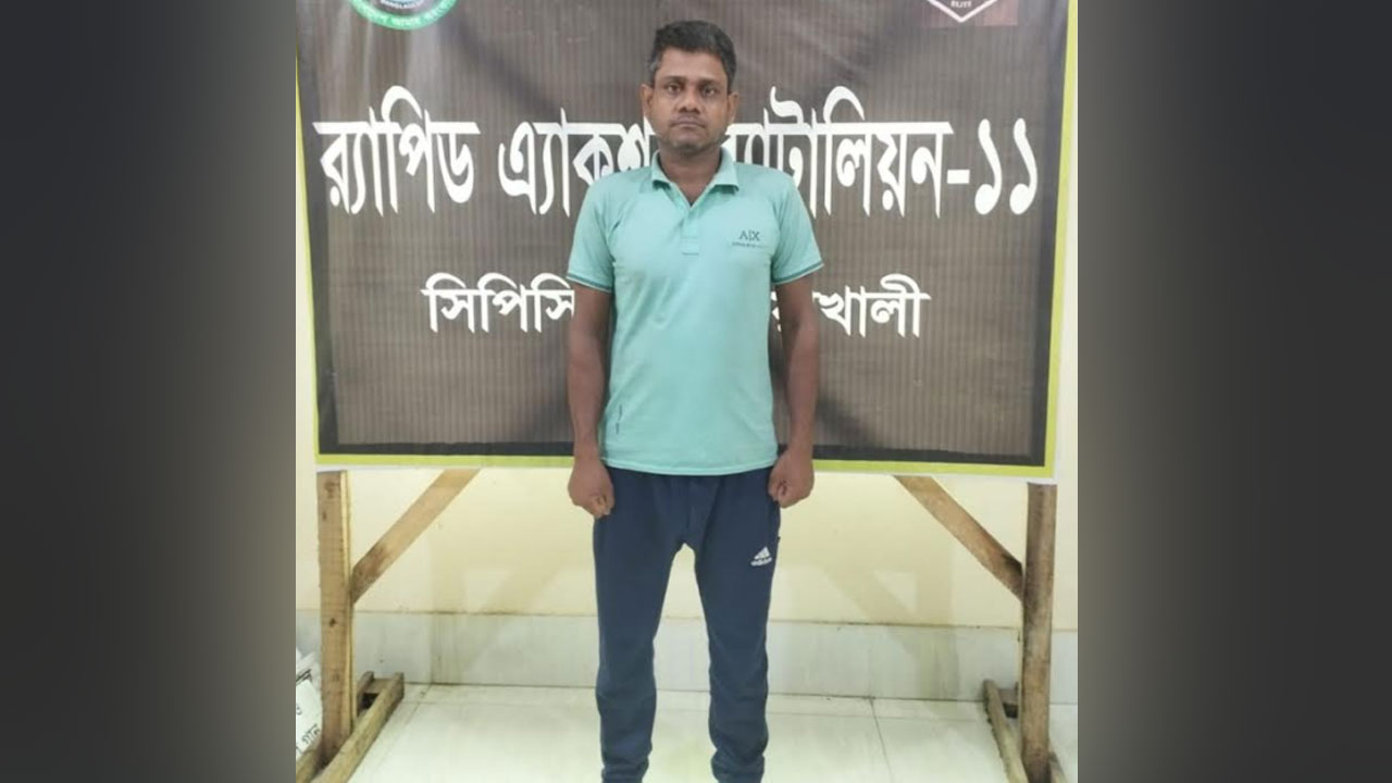 সোমবার (৩০ জুন) বেলা ১১টার দিকে র্যাব-১১ নোয়াখালী ক্যাম্পে এক সংবাদ সম্মেলনে এ তথ্য জানানো হয়েছে। এর আগে রোববার (২৯ জুন) রাতে রাজধানীর ঢাকেশ্বরী মন্দিরের সামনে থেকে তাকে গ্রেপ্তার করা হয়।