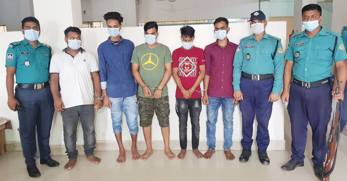গ্রেফতার ব্যক্তিরা হলেন শেরপুরের নকলা উপজেলার চর বসন্তিপুর গ্রামের কুতুবউদ্দিনের ছেলে মজনু মিয়া (২৭), রংপুরের পীরগঞ্জ উপজেলার তুলারামপুর গ্রামের কামরুল ইসলামের ছেলে আল আমিন (২৫), নাটোরের নলডাঙ্গা উপজেলার পশ্চিম সোনা পাতিল (আরিয়া পাড়া) গ্রামের ইউসুফ মিয়ার ছেলে স্বপন মিয়া (২২), টঙ্গী পশ্চিম থানার খরতৈল (সুখীনগর) এলাকার আবু তালেবের ছেলে মো. ফয়সাল (৩১) এবং টঙ্গী পূর্ব থানা এলাকার আলী হোসেনের ছেলে মো. ওয়াসিম (৩৪)।