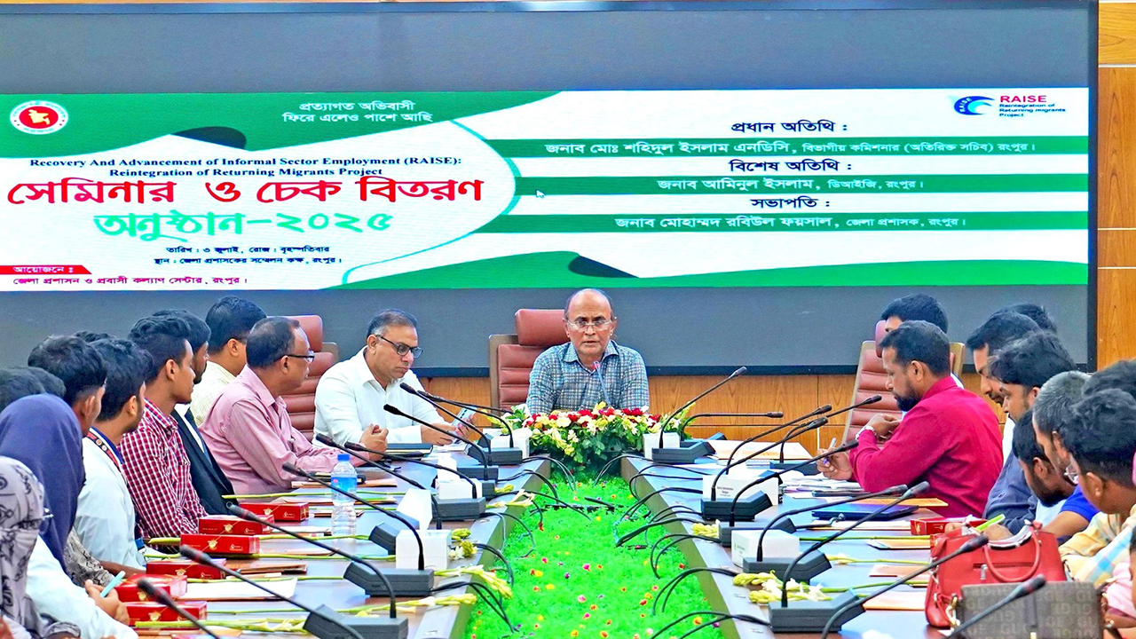 রংপুরে ওয়েজ আর্নার্স কল্যাণ বোর্ড, প্রবাসী কল্যাণ ও বৈদেশিক কর্মসংস্থান মন্ত্রণালয় কর্তৃক বাস্তবায়নাধীন ‘Recovery And Advancement of Informal Sector Employment : Reintegration of Returning Migrants Project’ শীর্ষক প্রকল্পের আওতায় রংপুর প্রবাসী কল্যাণ সেন্টারের উদ্যোগে এই অনুষ্ঠানের আয়োজন করা হয়।