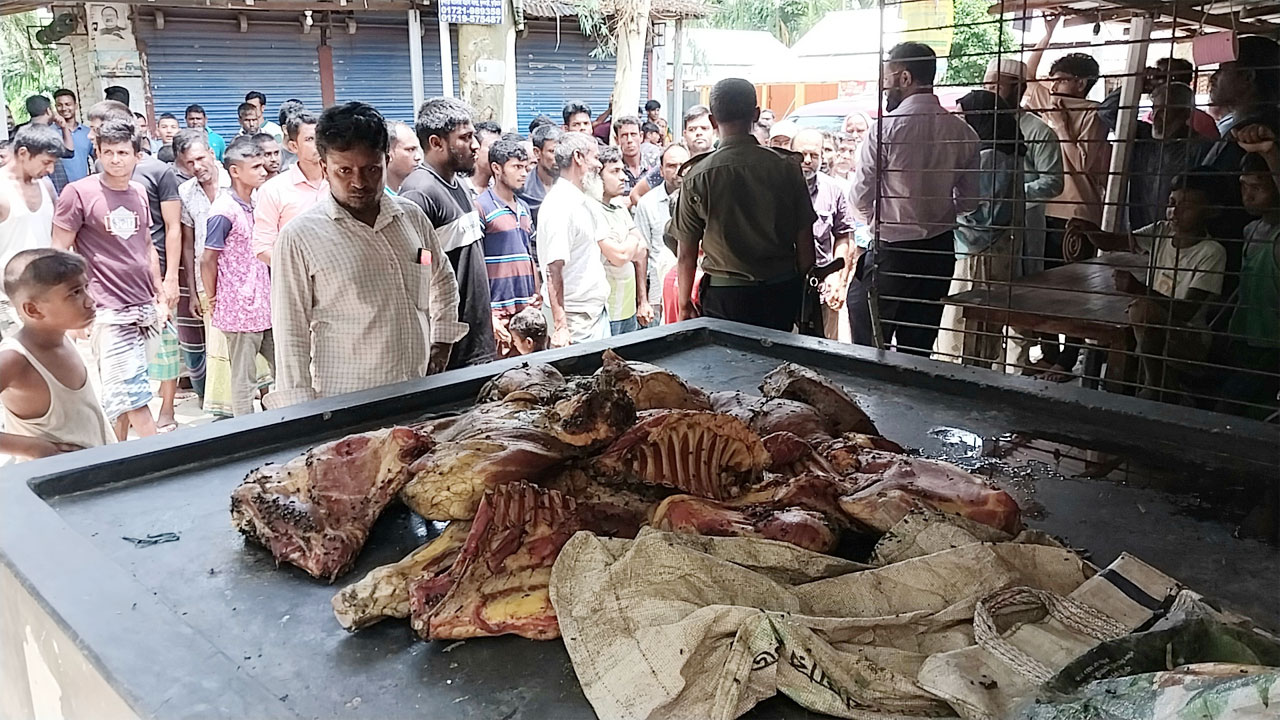 মরা গরু জবাই করে মাংস দোকানে নিয়ে যাওয়ার সময় কসাই আটক