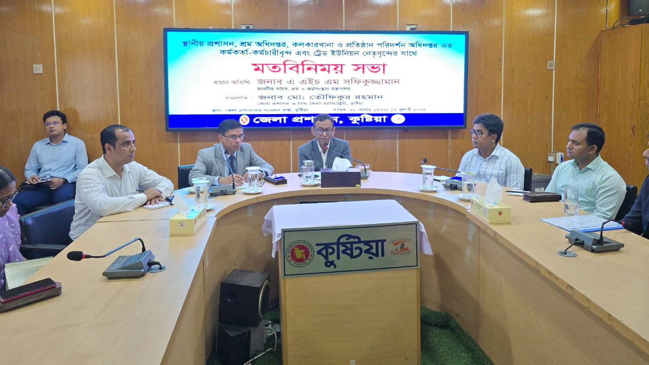 শনিবার (১২ জুলাই) বেলা সাড়ে ১১টায় কুষ্টিয়া জেলা প্রশাসক মো. তৌফিকুর রহমানের সভাপতিত্বে শ্রম সচিব জেলার সকল ট্রেড ইউনিয়নভুক্ত সংগঠনের নেতৃবৃন্দের সাথে এক মতবিনিময় সভা করেন। সেখানে তিনি বলেন, “জনগণের রাস্তা অবরোধ করা সম্পূর্ণ বেআইনি। এটি সরাসরি ফৌজদারি অপরাধ। কোনো উপদেষ্টা বা নেতার বাসভবন ঘেরাও করে সমস্যার সমাধান হবে না। ট্রেড ইউনিয়নের নেতাদের দায়িত্বশীল আচরণ করা উচিত।”