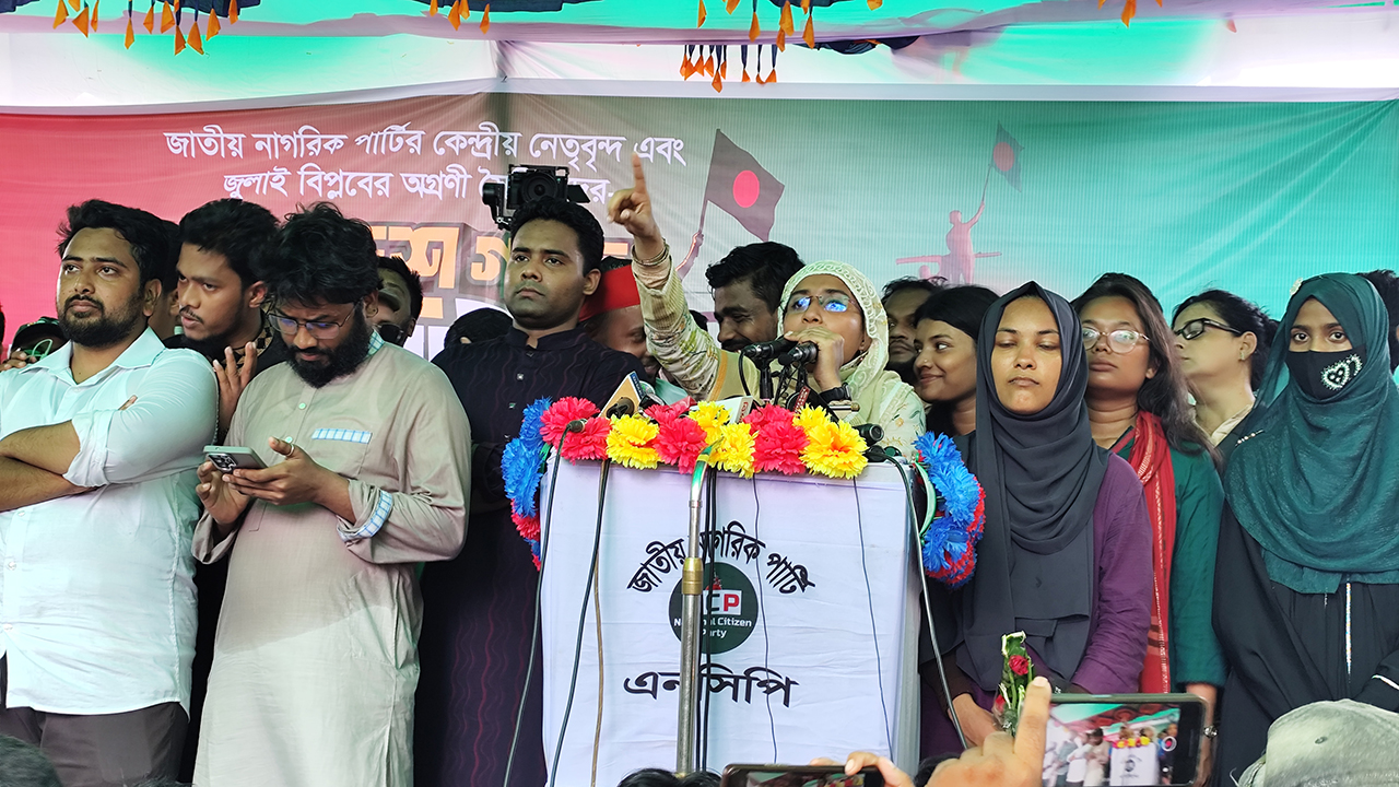 তিনি বলেন, আপনারা এক দিন সময় নিয়েছিলেন ফ্যাসিস্টকে দূর করতে। এখানে এখনও নব্য ফ্যাসিস্ট আছে, নব্য ফ্যাসিস্টদের দূর করার কাজ হাতে নেওয়ার পাশাপাশি গণঅভ্যুত্থানের দল এনসিপির সঙ্গে থাকার আহ্বান জানান তিনি।