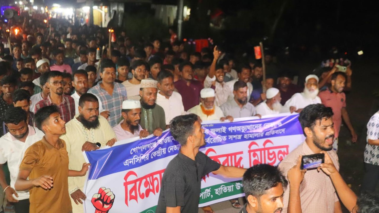 গোপালগঞ্জে হামলার প্রতিবাদে নোয়াখালীতে এনসিপির মশাল মিছিল
