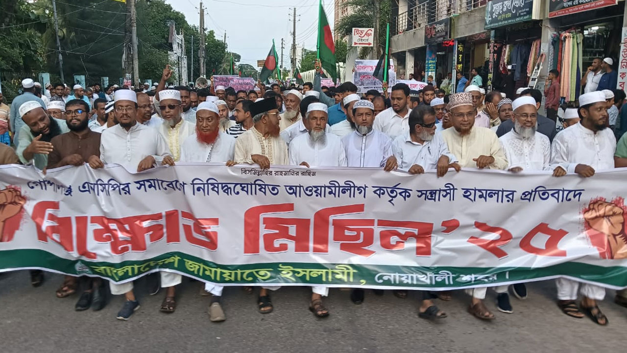 বৃহস্পতিবার (১৭ জুলাই) বিকেলে নোয়াখালী জেলা জামে মসজিদের সামনে অনুষ্ঠিত এক বিক্ষোভ সমাবেশে তিনি এসব কথা বলেন। গোপালগঞ্জে এনসিপির সমাবেশে হামলার প্রতিবাদে ও ১৯ জুলাই ঢাকায় জামায়াত ঘোষিত মহাসমাবেশ সফল করার লক্ষ্যে এ কর্মসূচি আয়োজন করে নোয়াখালী জেলা জামায়াত।