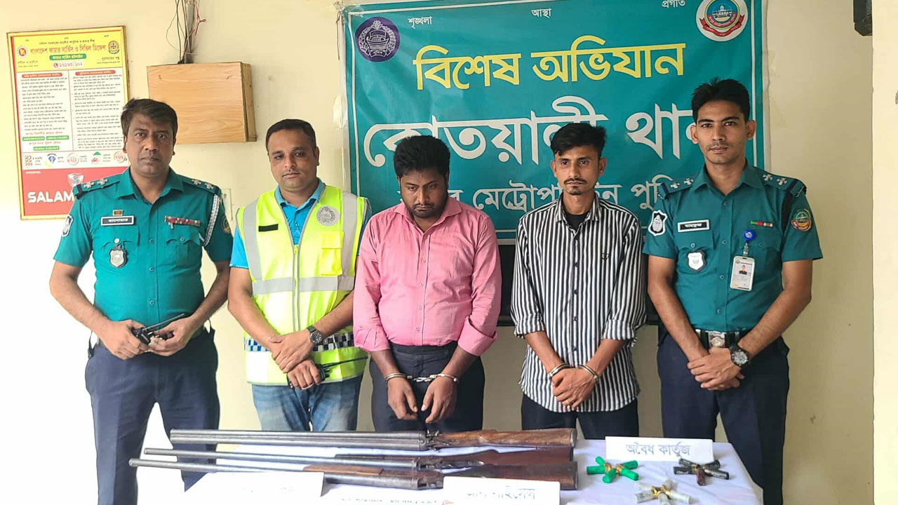 রংপুরে তিনটি অবৈধ আগ্নেয়াস্ত্র উদ্ধার, দুই নিরাপত্তারক্ষী গ্রেপ্তার