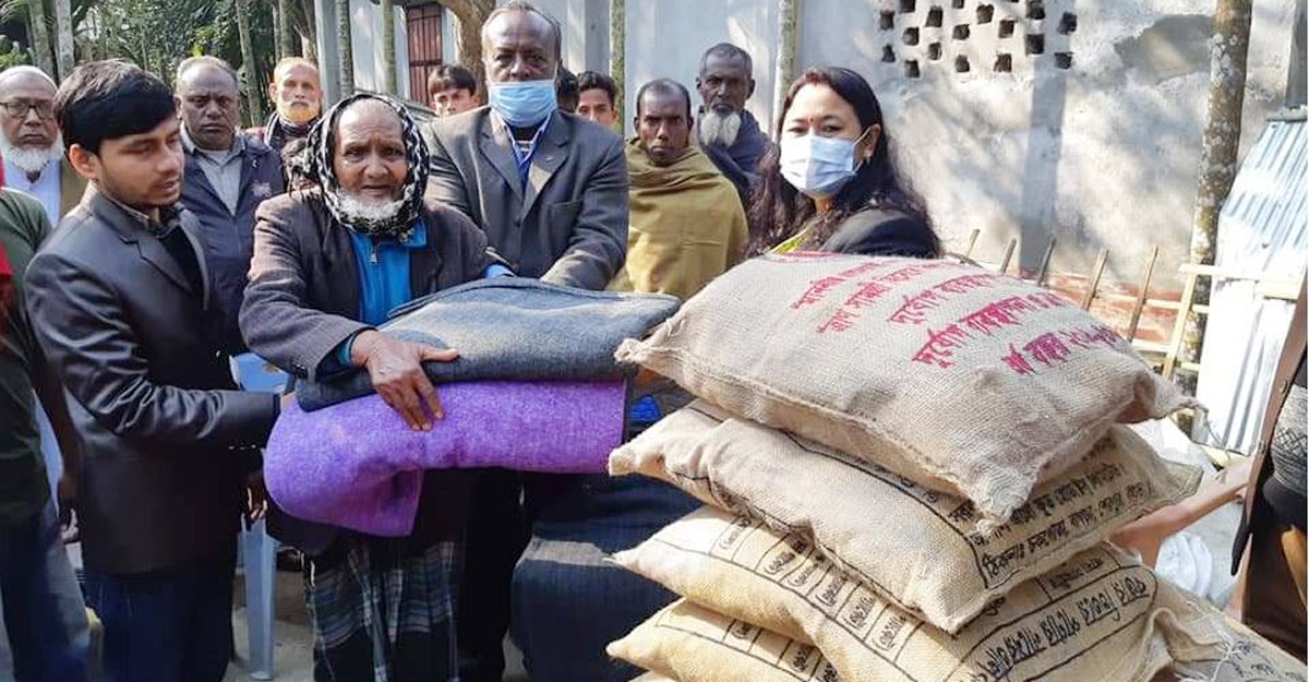 ক্ষতিগ্রস্ত দুই পরিবারের মাঝে খাদ্যসামগ্রী ও শীতবস্ত্র বিতরণ