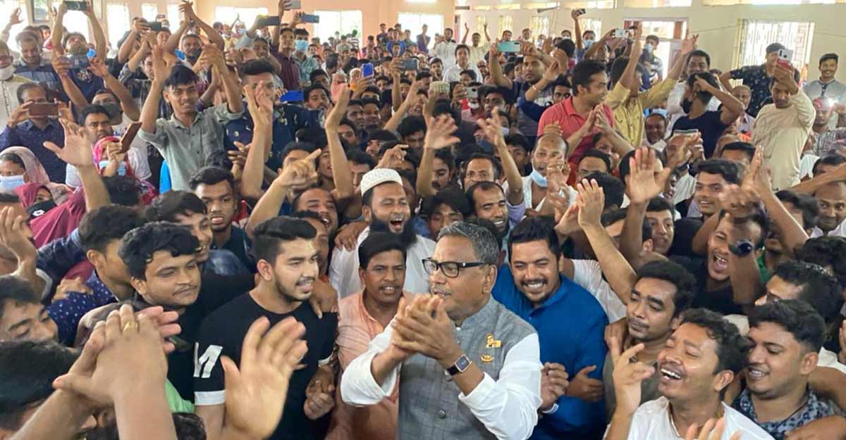 শুক্রবার (১১ জুন) বিকেলে বসুরহাট পৌর মিলনায়তনে আয়োজিত এক আলোচনা সভা ও দোয়া মাহফিলে গানের তালে তালে নাচেন তিনি।