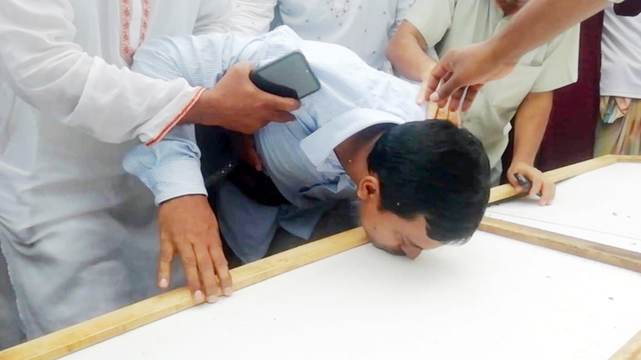 শেষ বিদায়ে মেয়ের কফিনে বারবার চুমু খান বাবা