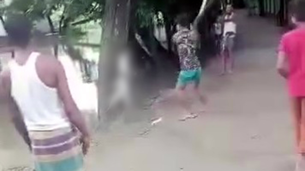 ছড়িয়ে পরা ভিডিওতে দেখা গেছে, একটি কুকুরকে গলায় রশি বেঁধে গাছের ডালের সঙ্গে টেনে ঝুলিয়ে লাঠি দিয়ে পিটিয়ে হত্যা করা হচ্ছে। কয়েকজন সেই চিত্রের ভিডিও ধারণ করছেন।