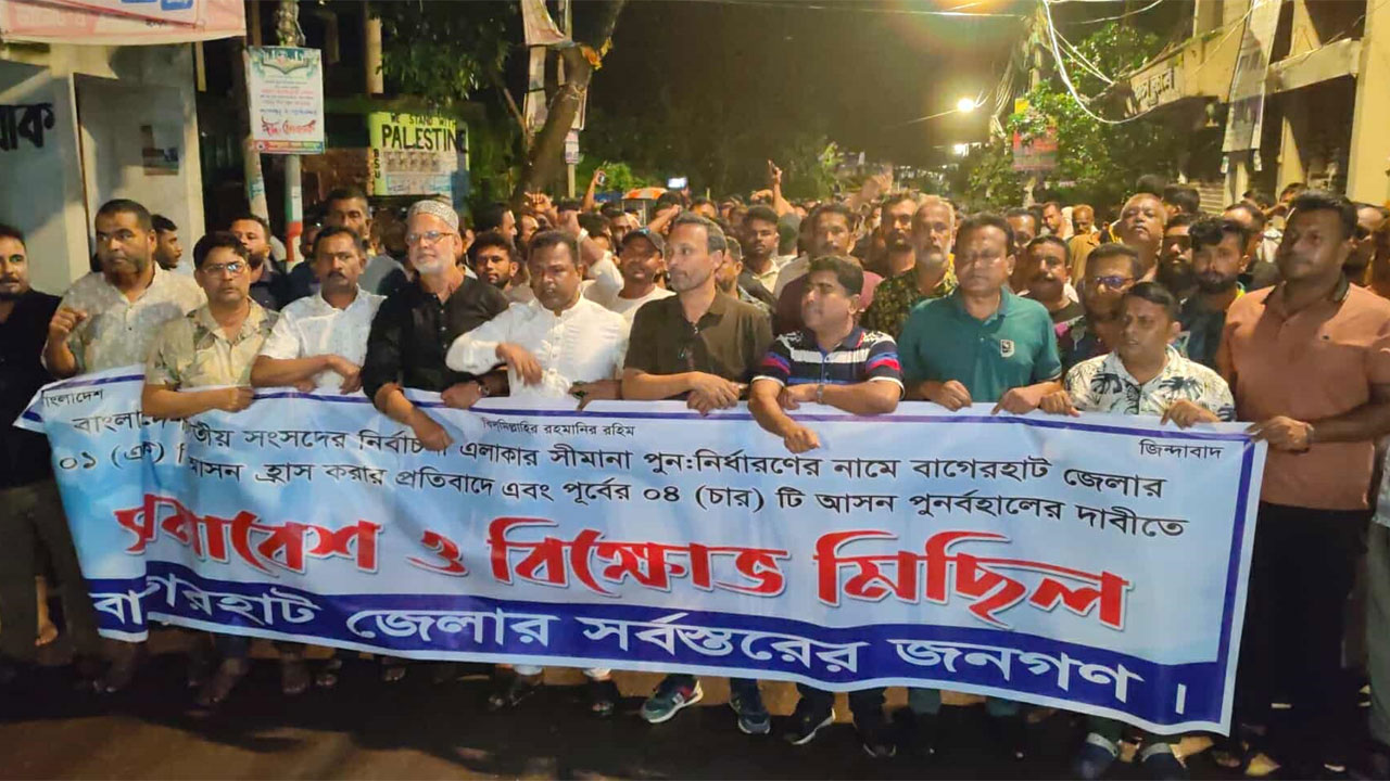সংসদীয় আসন কমানোর প্রস্তাবের প্রতিবাদে বাগেরহাটে বিক্ষোভ