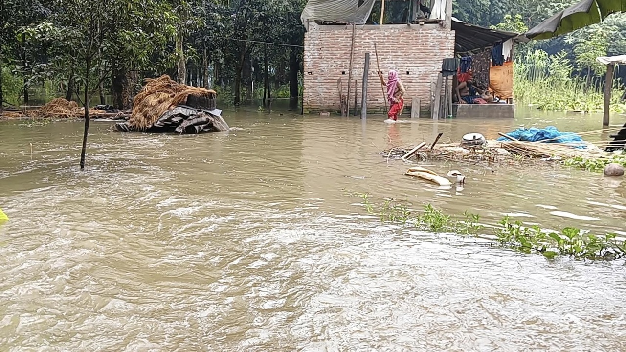 শিরাশুনি গ্রামের গুলশানা আরা খাতুন বলেন, উজানের পানি আর বৃষ্টিতে হঠাৎ করেই ডুবে গিয়েছে গ্রাম। রান্না করা, চলাফেরা, বাচ্চাদের লেখাপড়া— সবই থেমে গেছে।