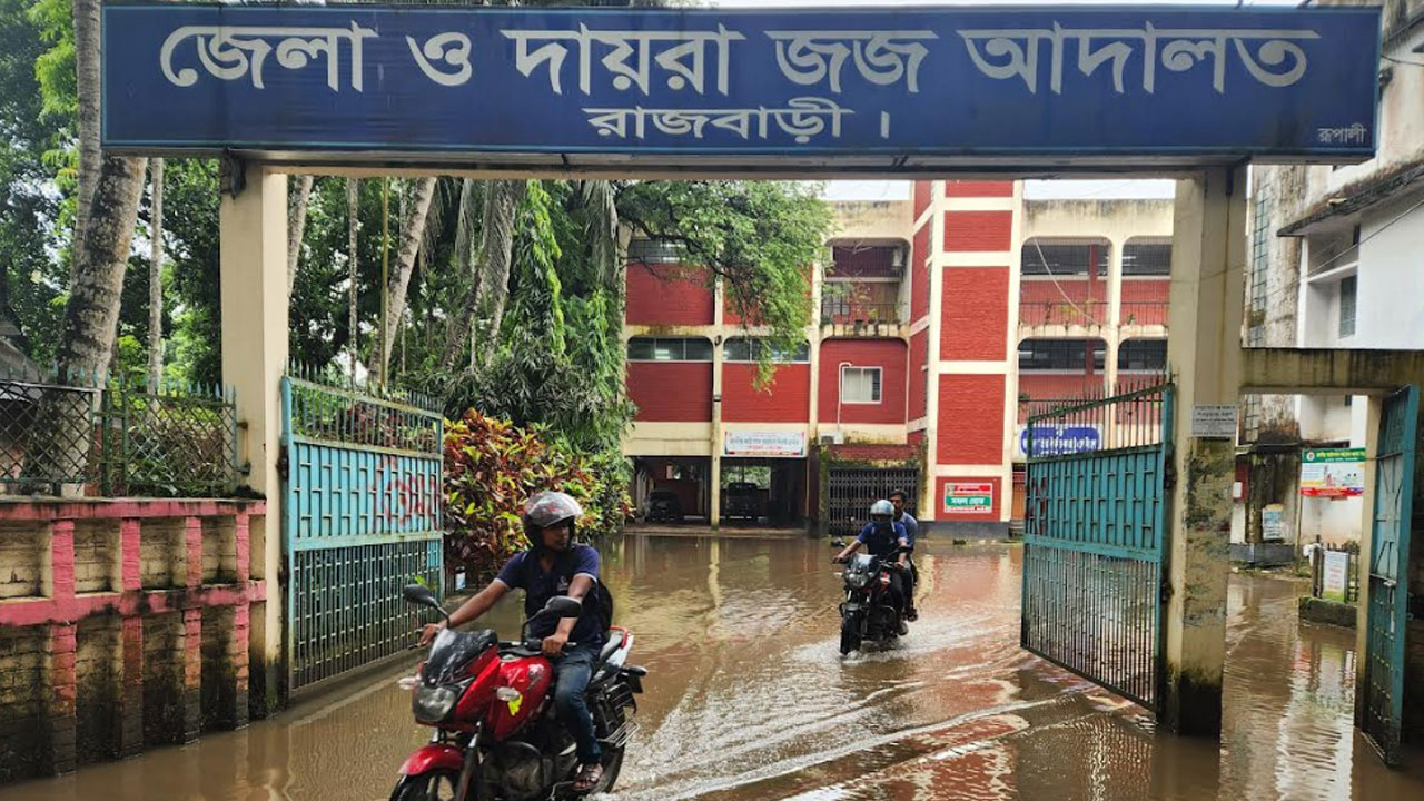 সরেজমিনে গিয়ে দেখা যায়, রাজবাড়ী আদালতের প্রবেশমুখের প্রধান ফটকেই বৃষ্টির পানিতে থৈ থৈ করছে। পানি ডিঙিয়েই সেবাপ্রার্থীরাসহ আদালতের কর্মকর্তাকর্মচারী ও আইনজীবীরা অফিসে যাচ্ছেন।