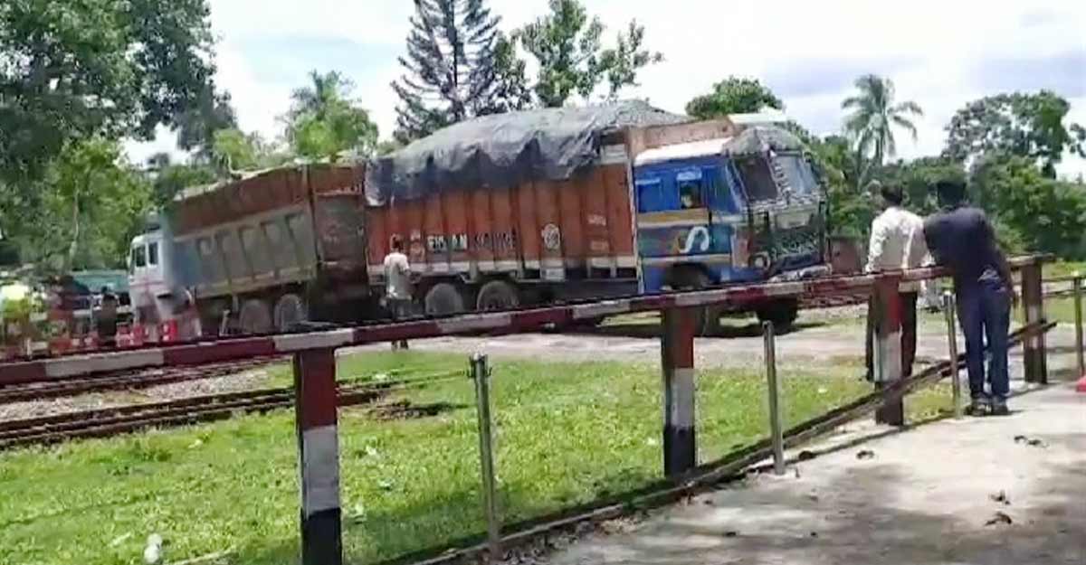 রেললাইনে ভারতীয় পণ্যবাহী ট্রাক বিকল