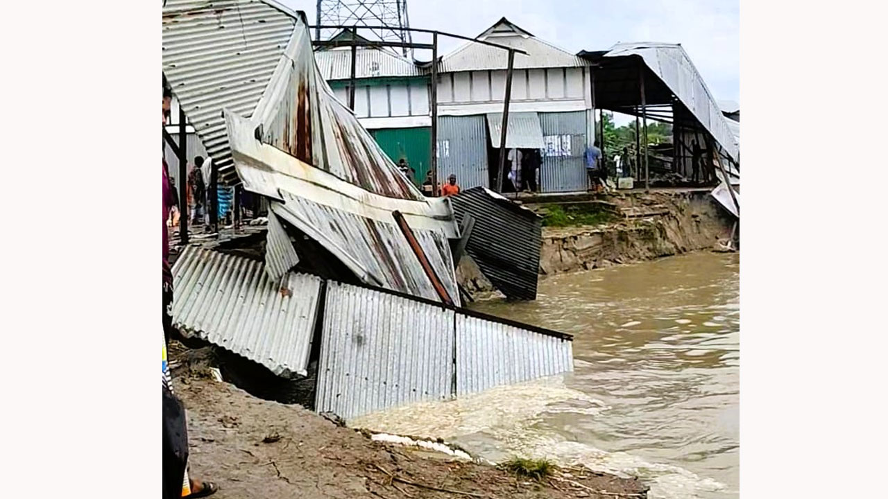 মঙ্গলবার সন্ধ্যা থেকে উজানের ঢল ও তীব্র স্রোতের কারণে হঠাৎ করেই শুরু হয় নদীভাঙন। স্থানীয় ব্যবসায়ীদের মধ্যে আতঙ্ক বিরাজ করছে। হুমকির মুখে থাকা দোকানগুলোর মালিকরা মালামাল সরিয়ে নিচ্ছেন।