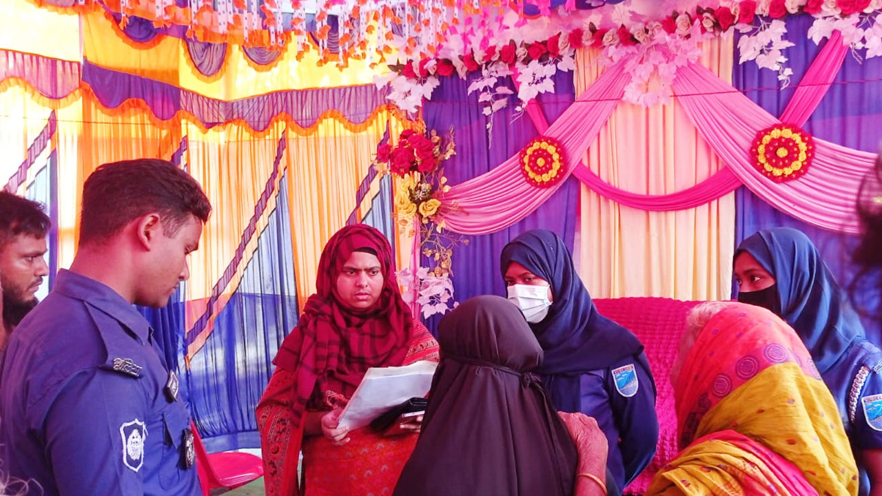 বিয়ে উপলক্ষ্যে শুক্রবার (১৫ আগস্ট) কনের বাড়িতে অনুষ্ঠানের আয়োজন করা হয়।বরযাত্রীদের আপ্যায়নের জন্য আয়োজন করা হয় বাহারী খাবারদাবারের। এমন খবর পেয়ে সদর উপজেলা নির্বাহী ও মহিলা বিষয়ক কর্মকর্তার নির্দেশে কিশোর কিশোরী ক্লাবের জেন্ডার প্রোমটার গোলাম রব্বানী, গ্রাম পুলিশসহ স্থানীয় মেম্বার সকাল ১০ টায় মেয়ের বাসায় উপস্থিত হন।