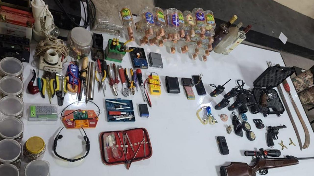 সেনাবাহিনীর সূত্র বলছেন, ডক্টরস ইংলিশ নামের ওই প্রতিষ্ঠানে অভিযান চালিয়ে দুটি বিদেশি এয়ার গান, একটি রিভালবার, সঠিক কর্টিজ, ইয়ারগান শিশা তিন বক্স, ম্যাগনেট একটি, দেশীয় অস্ত্র ৬টি, জিপিএস একটি, ওয়াকিটকি ৪টি, ট্রেজার গান একটি, সিমকার্ড ১০টি, বাইনোকুলার একটি, বিস্ফোরক তৈরির সরঞ্জাম, পাসপোর্ট, এনআইডি, মনিটর ৬টি, কম্পিউটার ৩টি, স্ক্যানার ৩টি ও মদের বোতল ৩৫টি উদ্ধার করা হয়েছে।