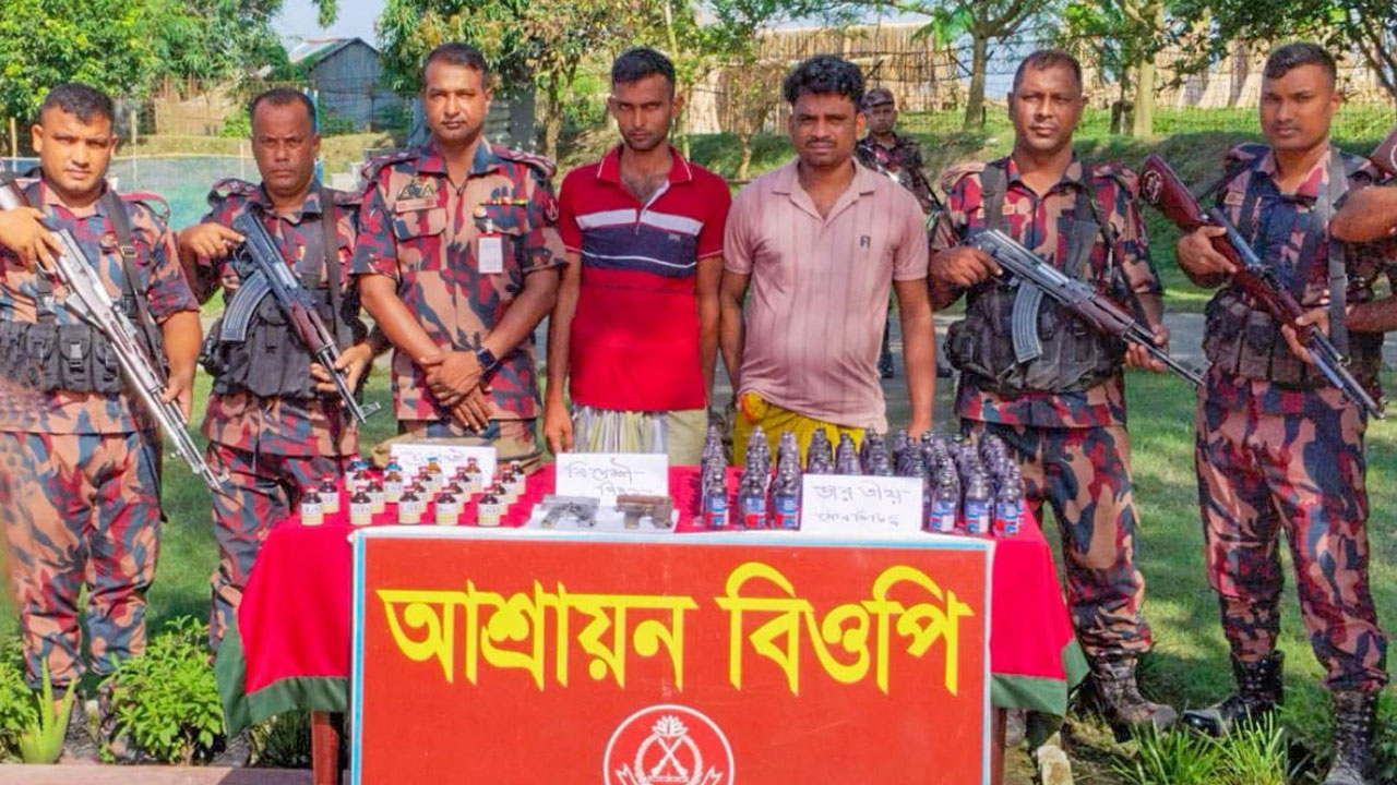 কুষ্টিয়ার দৌলতপুর সীমান্ত এলাকায় ১০ কোটি ৪২ লাখ টাকার মাদক, দুটি বিদেশি পিস্তল ও গুলিসহ দুই যুবককে আটক করেছে বিজিবি।