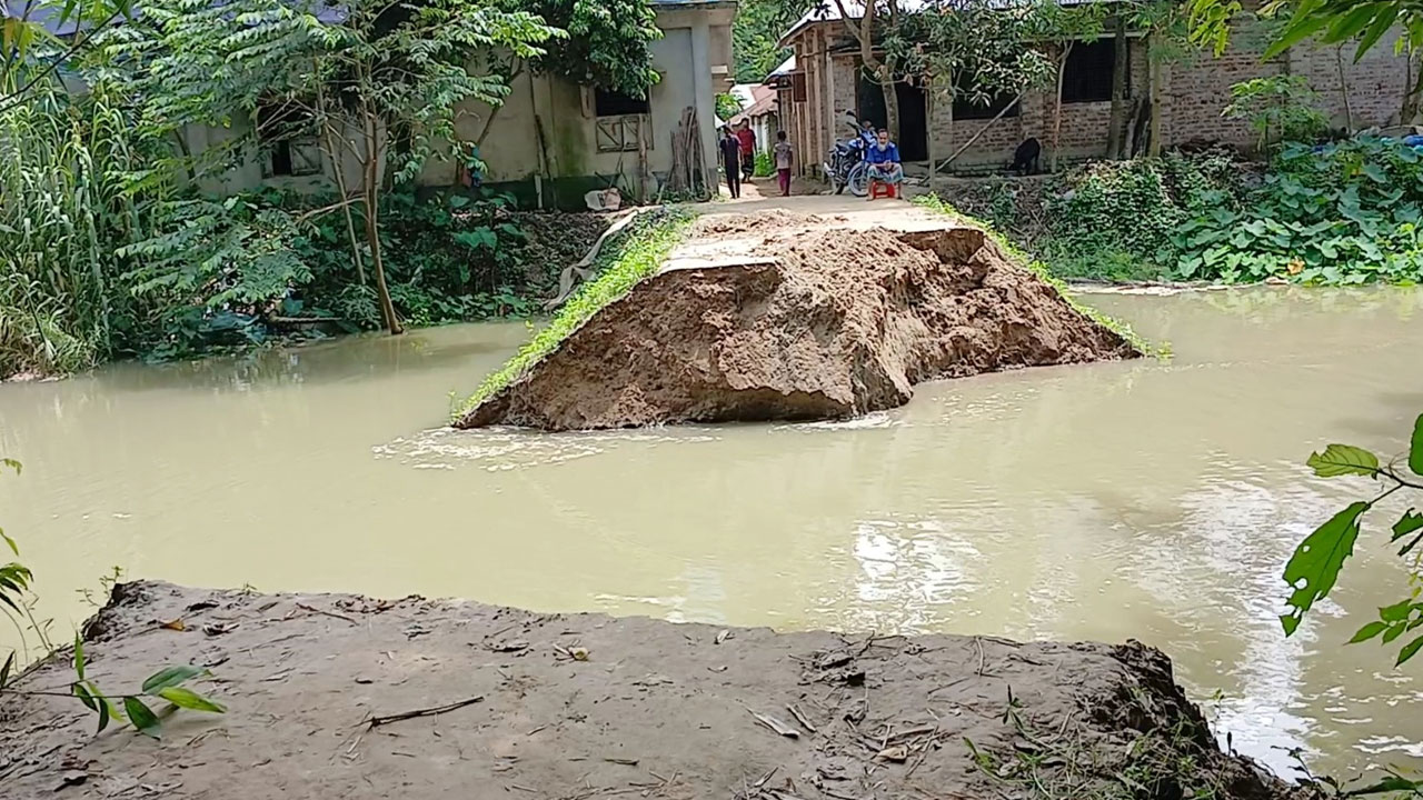 স্থানীয়রা বলছেন, এই একই স্থান গত বছর বন্যার পানিতে ভেঙে গিয়েছিল। এরপর মাসখানেক আগে বেড়িবাঁধের এই অংশটুকু মেরামত করা হয়। কিন্তু নদীতে পানি বৃদ্ধি পাওয়ায় আবারও অংশটি ভেঙে গেছে।