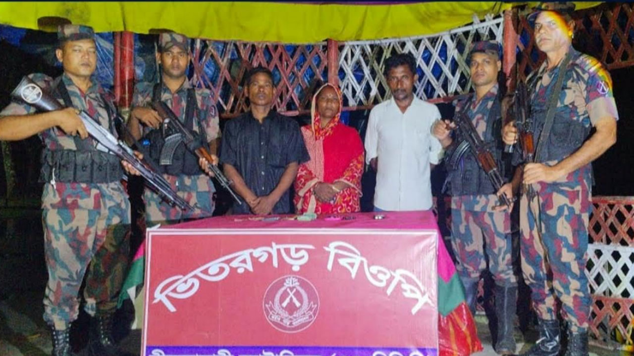 পঞ্চগড় সীমান্ত দিয়ে অবৈধভাবে ভারতে প্রবেশের সময় তিন বাংলাদেশিকে আটক করেছে বর্ডার গার্ড বাংলাদেশ (বিজিবি) ৫৬ ব্যাটালিয়ন।