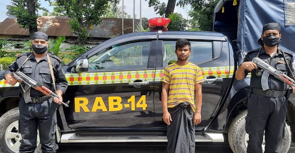 সোমবার (১৪ জুন) বিকেলে ব্রাহ্মণবাড়িয়ার আখাউড়া উপজেলার আমুদাবাদ এলাকায় অভিযান চালিয়ে তাকে গ্রেফতার করে র্যাব-১৪ এর ভৈরব ক্যাম্প।