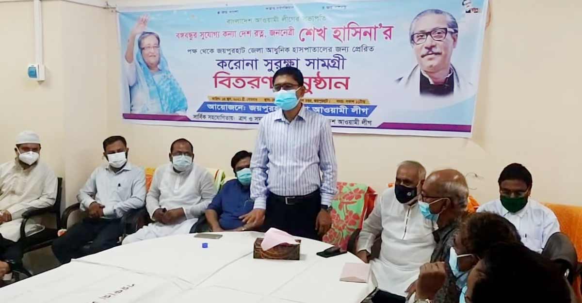 সোমবার (১৪ জুন) দুপুরে জয়পুরহাট জেলা আওয়ামী লীগের আয়োজনে কেন্দ্রীয় ত্রাণ ও সমাজকল্যাণ উপকমিটির সহযোগিতায় হাসপাতাল চত্বরে এসব সামগ্রী প্রদান করা হয়।